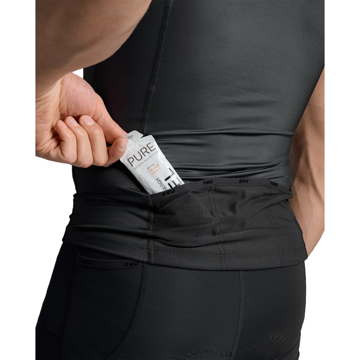 + 3 bolsillos traseros de malla para la nutrición que proporcionan múltiples lugares de almacenamiento, así como un fácil acceso mientras te mueves