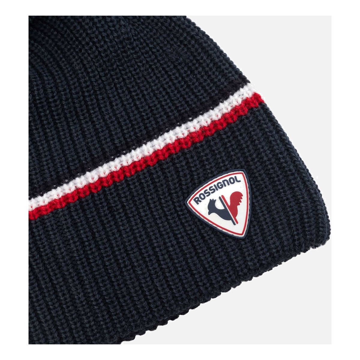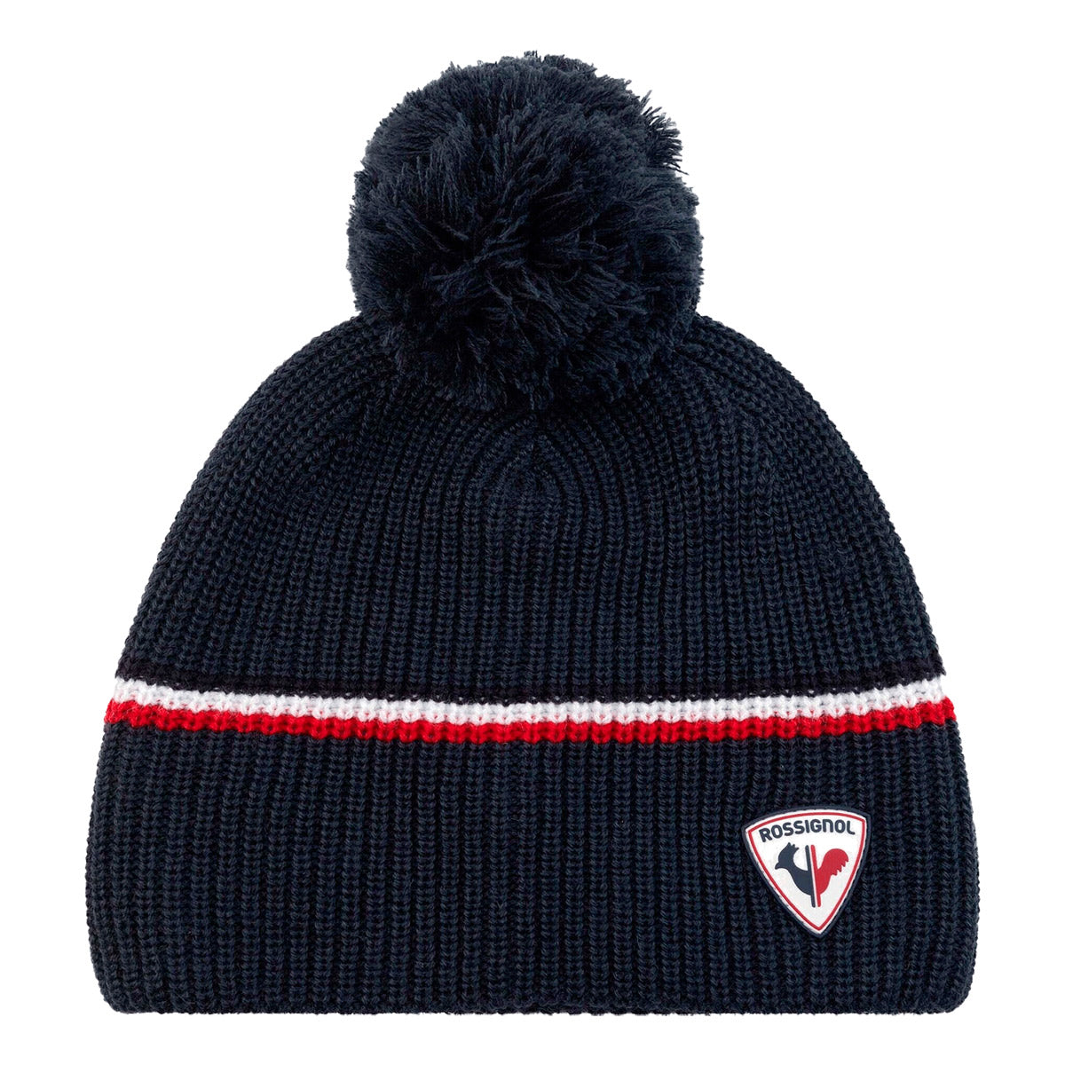 Un pompón tradicional y las inconfundibles rayas tricolores de Rossignol aportan al gorro Ewan un aire clásico. Un suave tejido de punto de lana con franja de felpa proporciona comodidad y calidez sin picores.