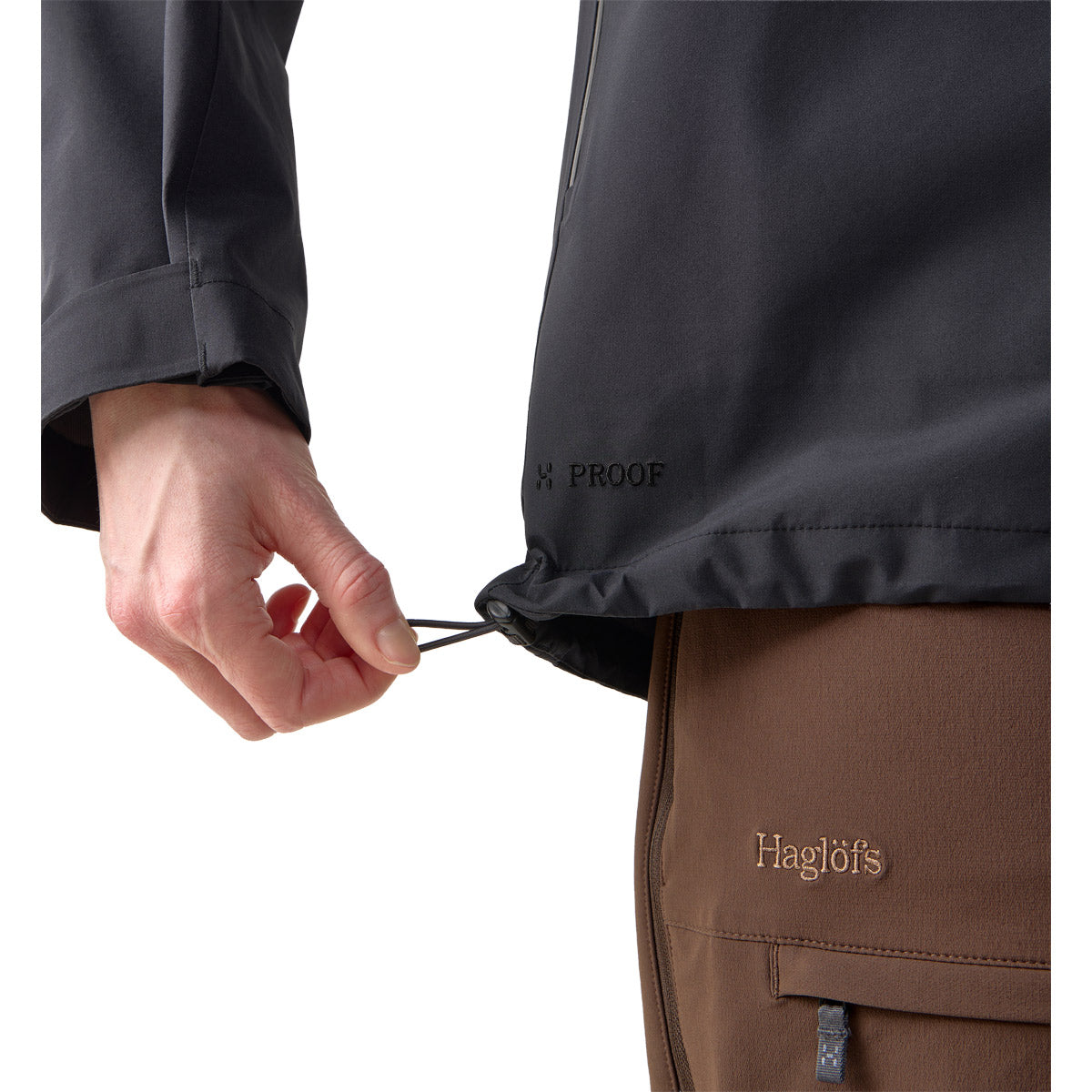 + permeabilidad a la humedad: 20.000 g/m2/24h, DWR sin PFAS, 157 g/m2, bluesign® approved., Tejido Proof PRO 3L, 75 deniers, 100% poliéster reciclado, cabeza hidrostática: 20.000 mm