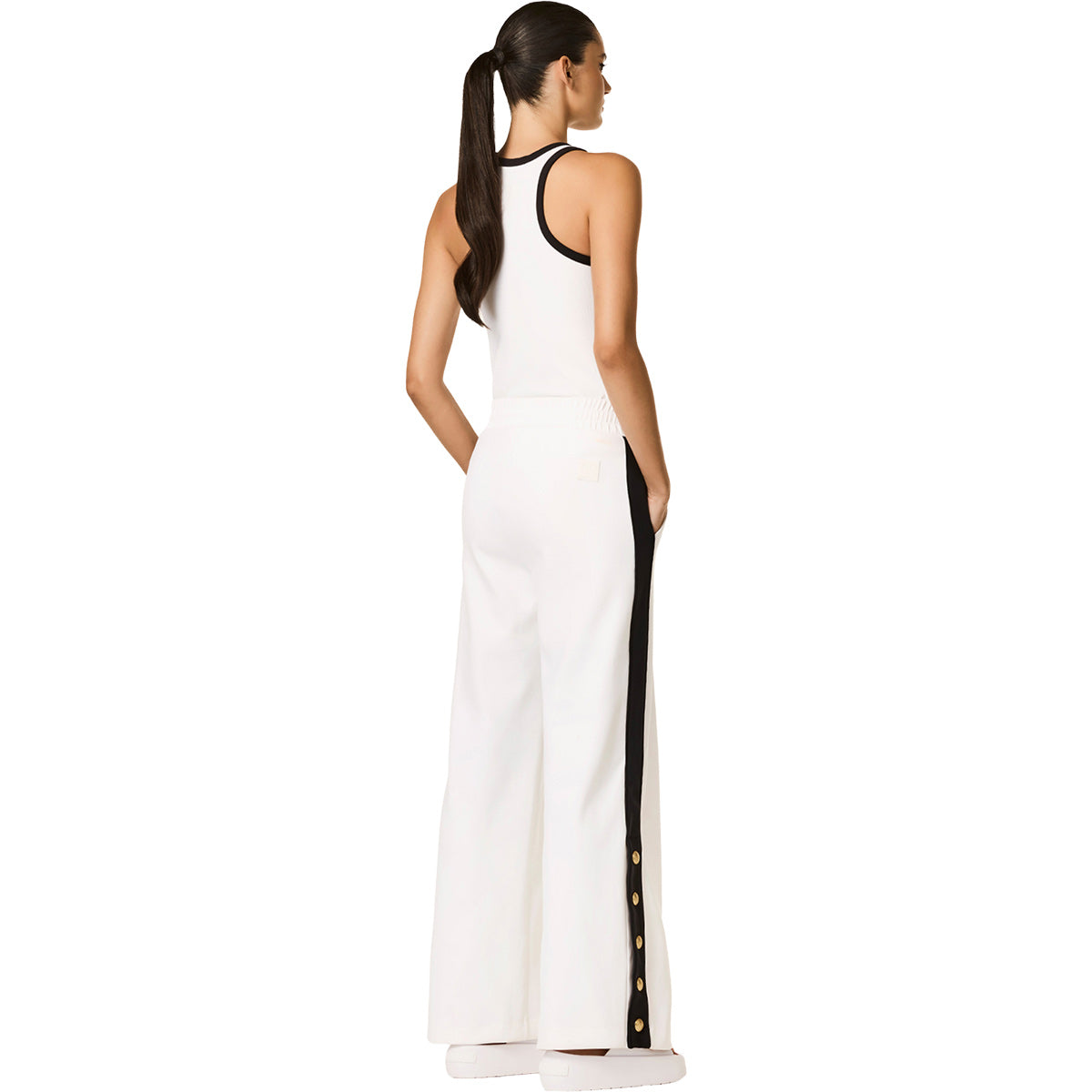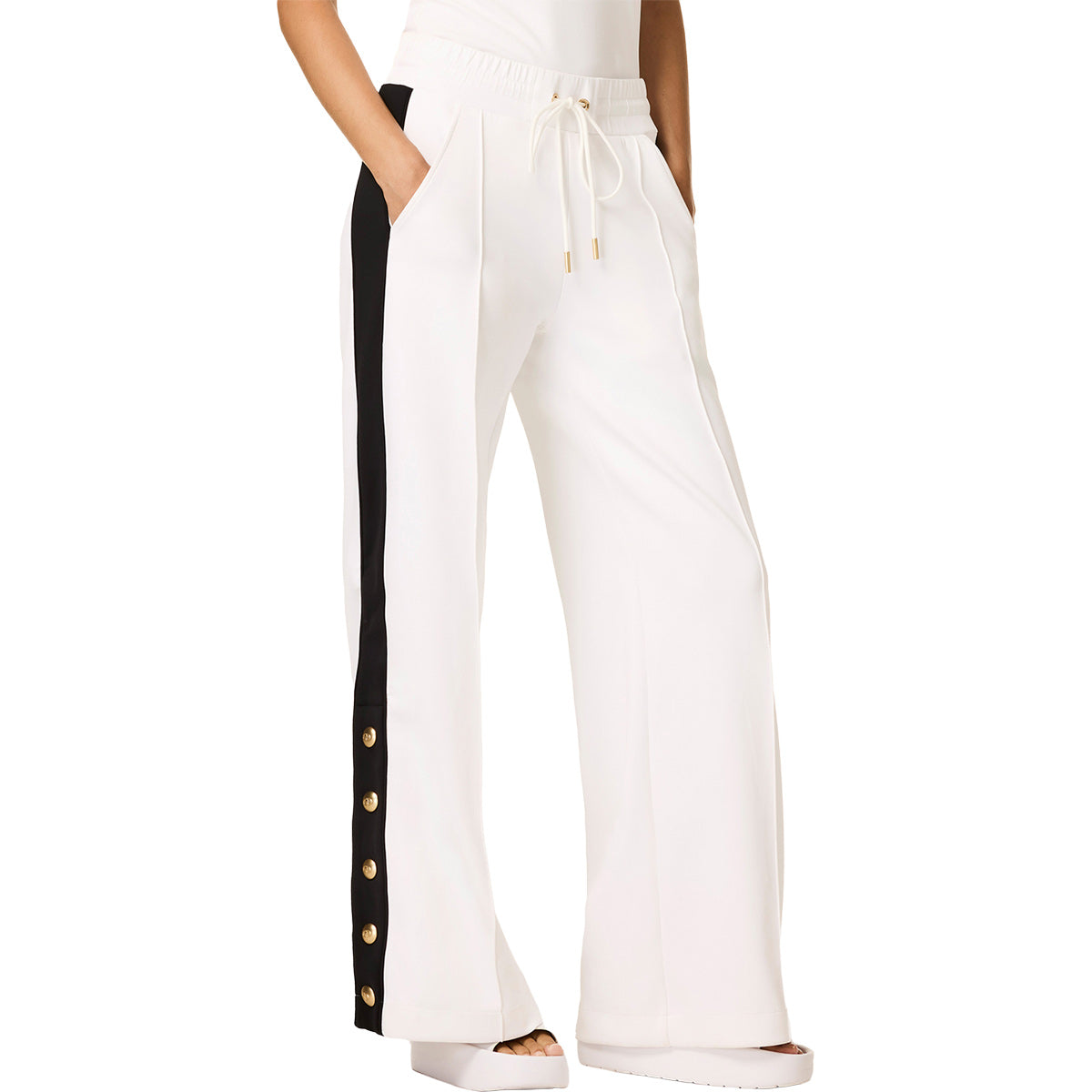 Pantalón deportivo de pernera ancha con botones laterales y ajuste regular.
