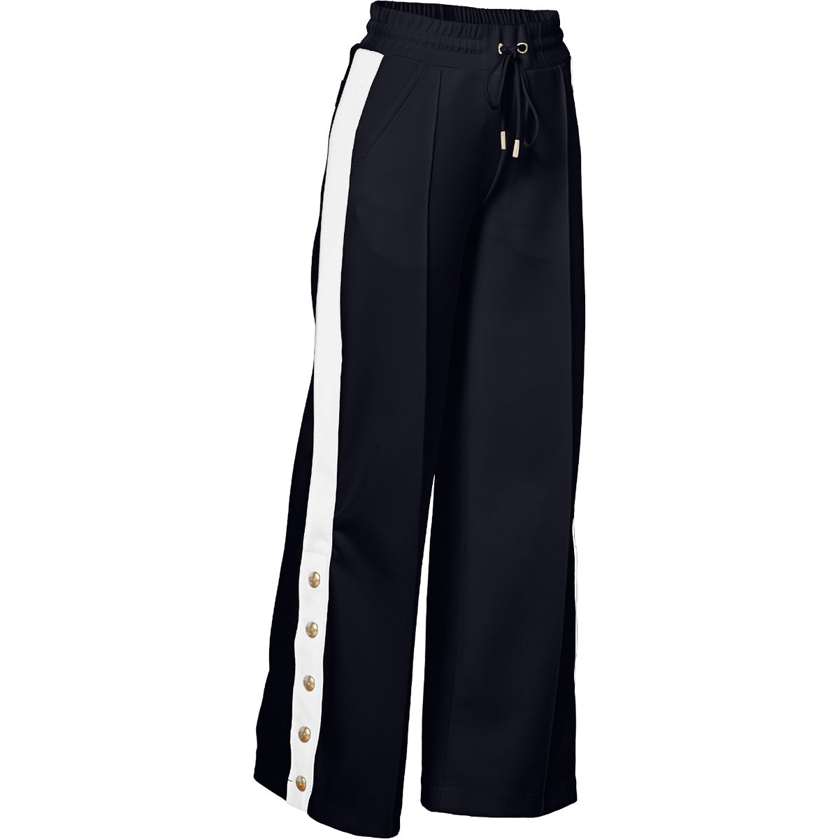 Pantalón deportivo de pernera ancha con botones laterales y ajuste regular.