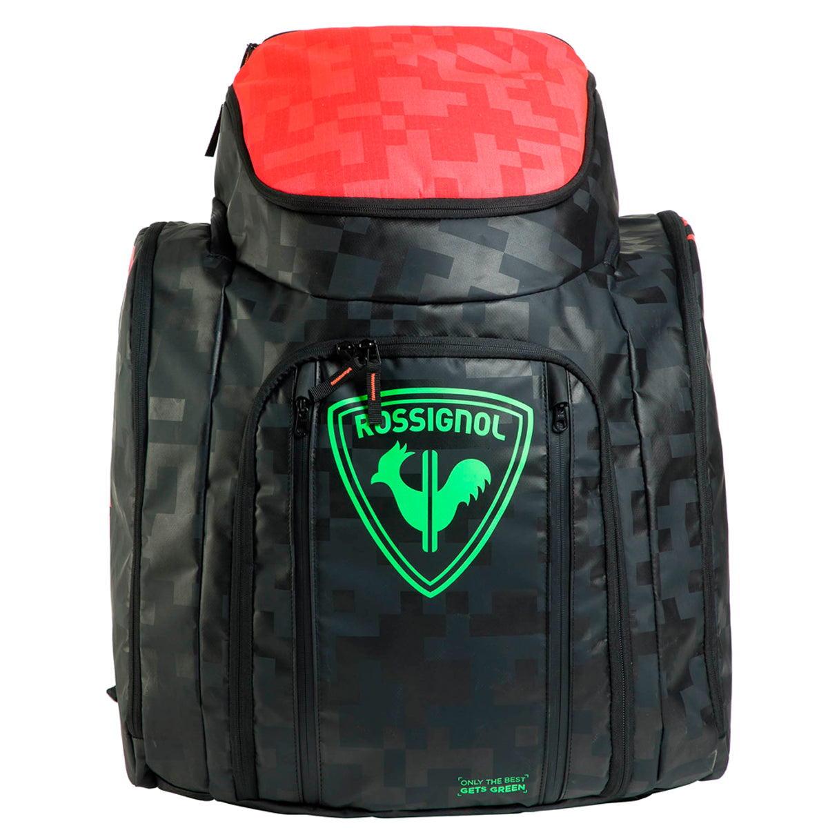 The Rossignol Hero Heated Athletes Bag is an extra-large, World Cup circuit-ready backpack with a built-in heater for warming and drying your gear. Made for hauling race-day gear in one organized bag, the pack has dedicated storage for ski boots, a helmet, and goggles. Lined side compartments separate boots from other gear, while protective internal zones keep your helmet and goggles easy to grab. The massive main compartment has plenty of space for layers and other gear. Smaller zip pockets add organization. Weatherproof ripstop polyester and a waterproof tarpaulin bottom keep contents dry in all conditions. Warm, Dry Boots Integrated boot heater operates on 120V or 12DC to keep gear dry and warm in the car or lodge Heavy-Duty Durability Durable 600-denier polyester is coated for waterproof protection Easy Access Internal contents can be accessed from the top, front, or back to quickly find what you need