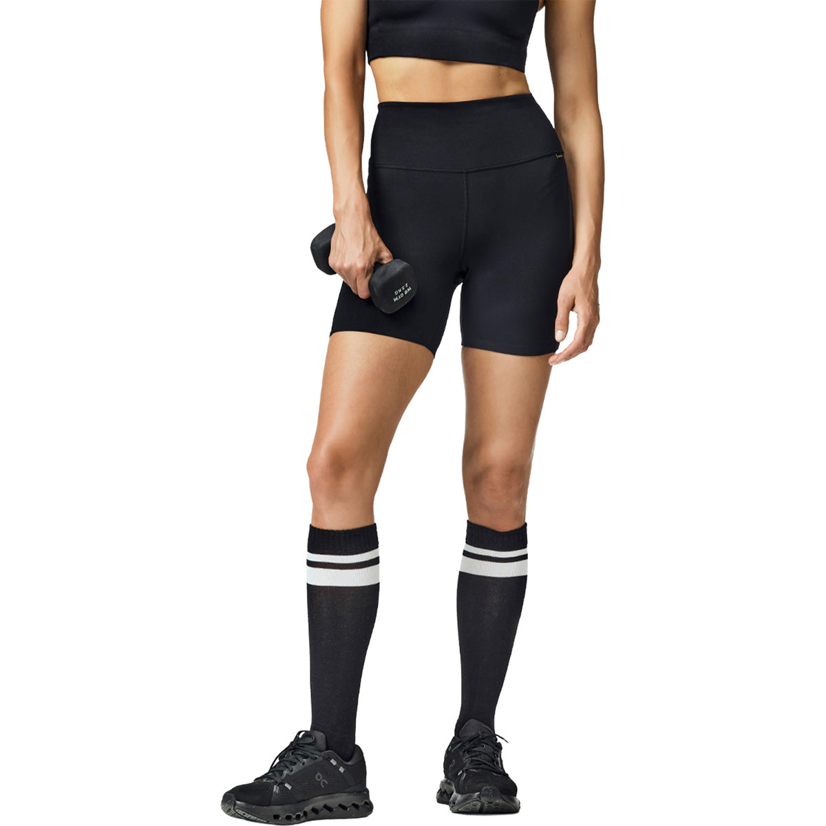 Short deportivo ajustado con paneles brillantes y bolsillo interior.
