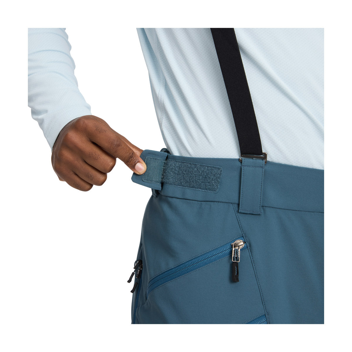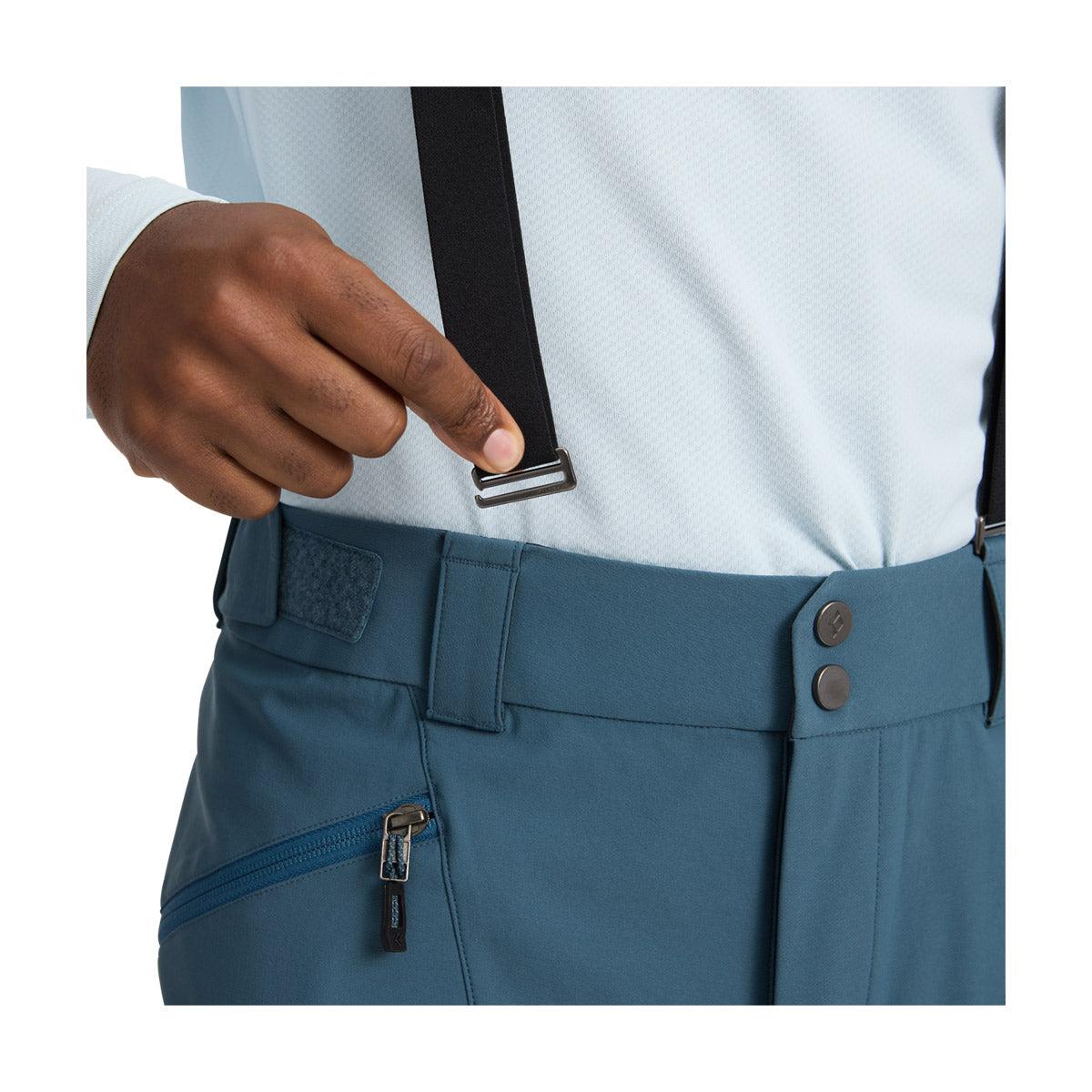 Nuestro pantalón softshell clave, el Black Diamond Dawn Patrol Pants, es elástico, transpirable y está listo para excursiones de todo el día y para el uso diario en el backcountry. Diseñado con tejido softshell elástico en cuatro direcciones de doble trama con un acabado DWR, el Dawn Patrol Pants proporciona una movilidad de alto nivel sin dejar de ser muy duradero. Con tirantes ajustables y desmontables, cintura ajustable con velcro, dos ventilaciones con cremallera en los muslos y dos bolsillos con cremallera en los muslos (el derecho tiene una correa para el sistema electrónico), los Dawn Patrol Pants tienen un conjunto de características sencillas para una amplia gama de usos invernales. La articulación añadida en las rodillas y las caderas proporciona un amplio rango de movimiento. Por último, las cremalleras laterales con polainas para la nieve integradas permiten un fácil acceso y protección de las botas, mientras que los parches reforzados en el empeine protegen contra los bordes afilados de los esquís y las puntas de los crampones.