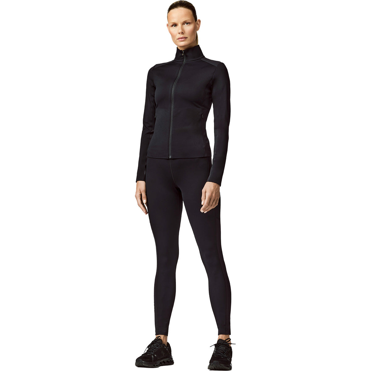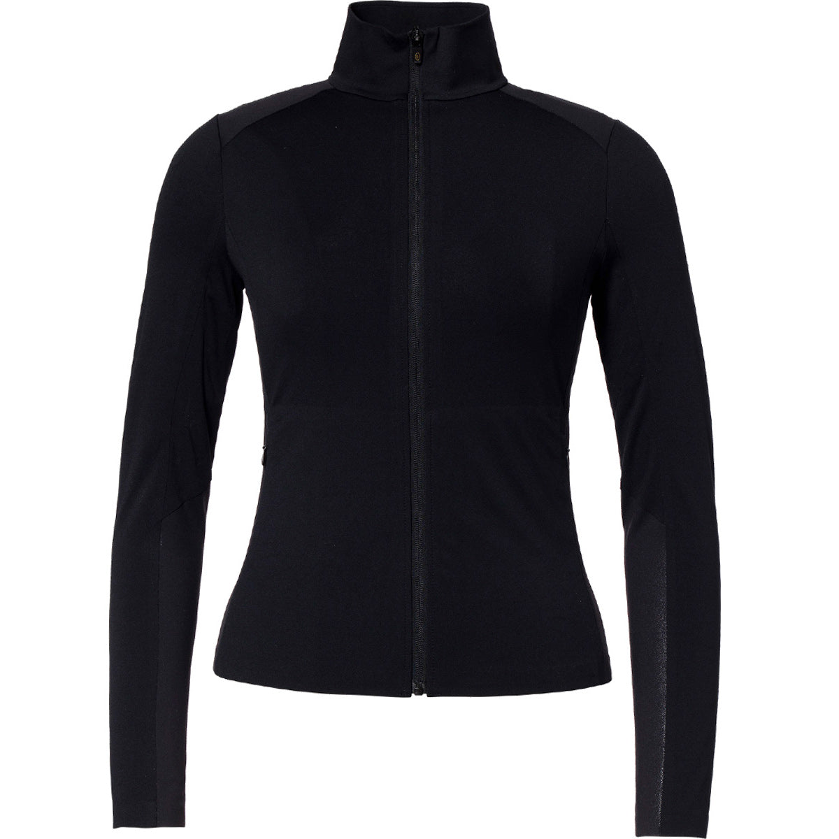 Chaqueta deportiva con cremallera completa, paneles brillantes y ajuste ceñido.