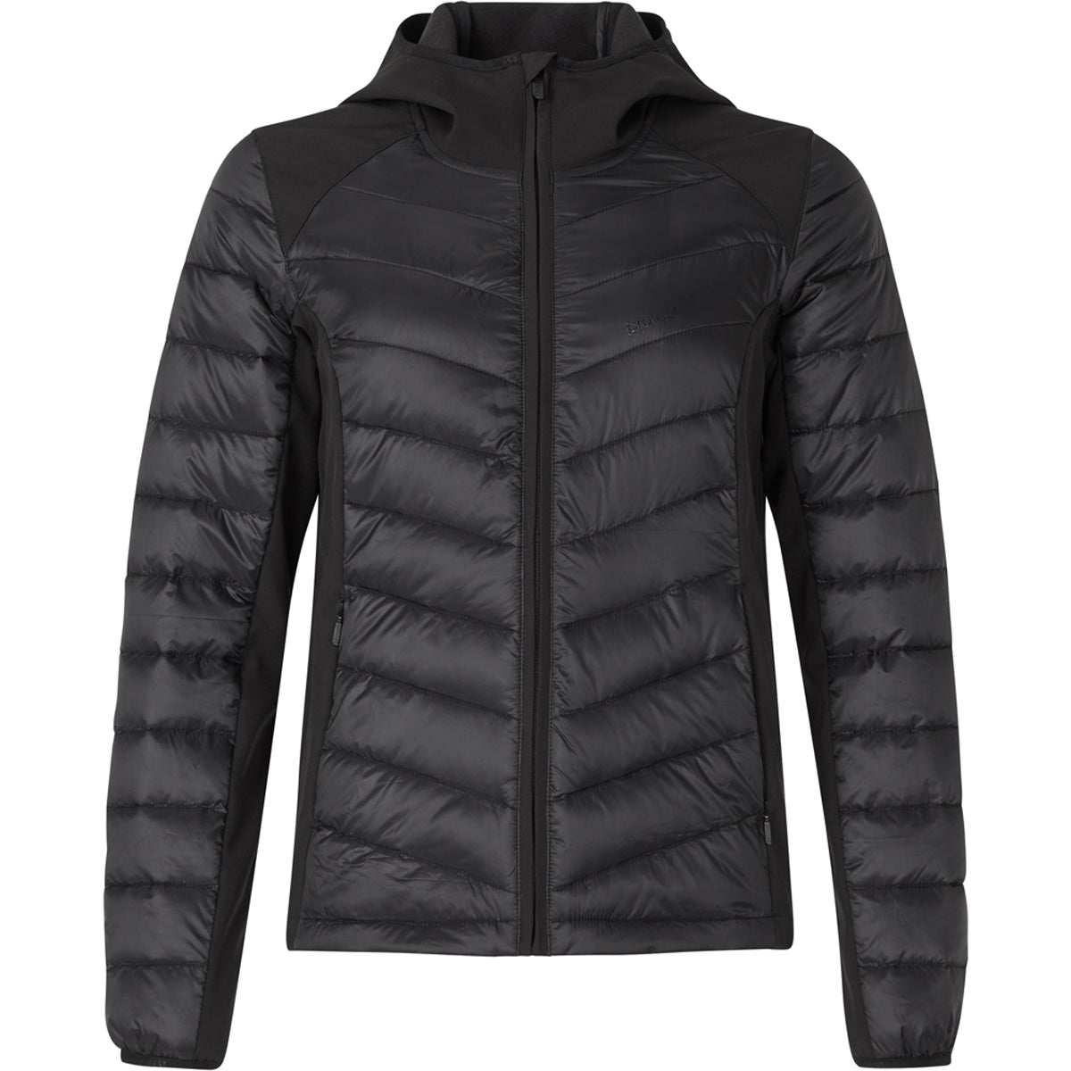 + Softshell, Acabado repelente al agua duradero sin PFC, Corte entallado, Manga larga, Longitud regular, Cuello regular, Capucha fija, Cremallera completa, Cremallera invertida