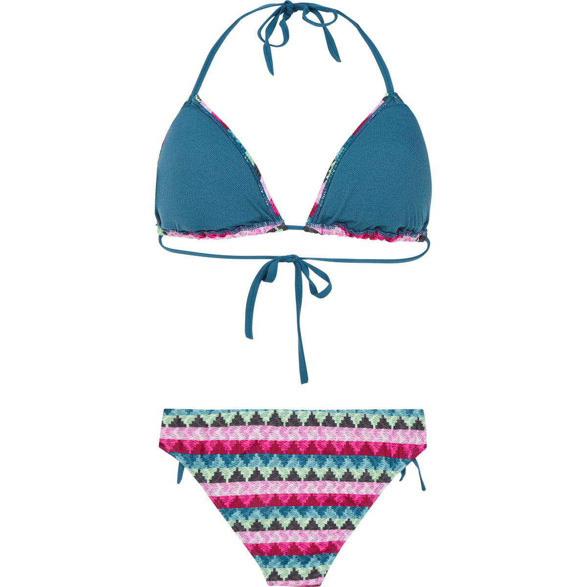 Te presentamos tu nuevo esencial del verano, el PRTELENAS de Protest. Este conjunto viene con un precioso top de bikini triangular con un ajuste de apoyo y personalizable gracias al cierre de lazo en la espalda y el cuello. Tiene copas extraíbles de secado rápido para mayor comodidad y sujeción cuando sea necesario. Las braguitas de bikini normales a juego tienen bonitos lazos a los lados. El bonito tejido texturizado le da un toque encantador. El PRTELENAS también forma parte de nuestra iniciativa para hacer las cosas más ecológicas; no se utilizan PFC en el proceso de producción†.