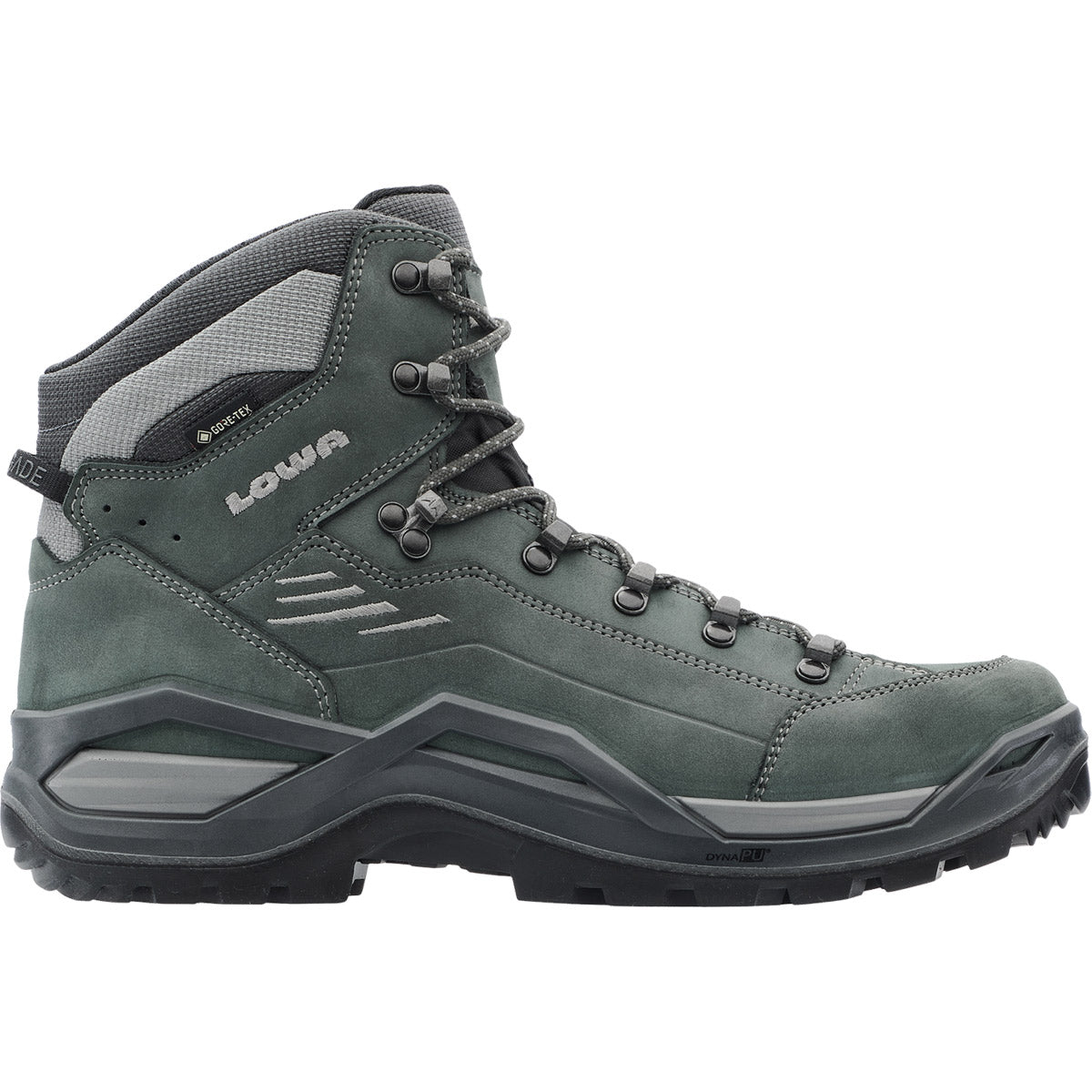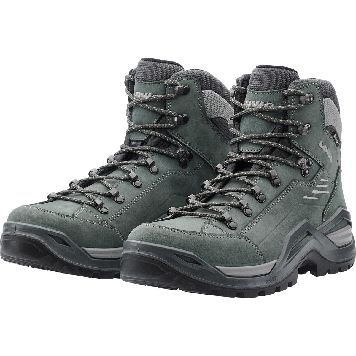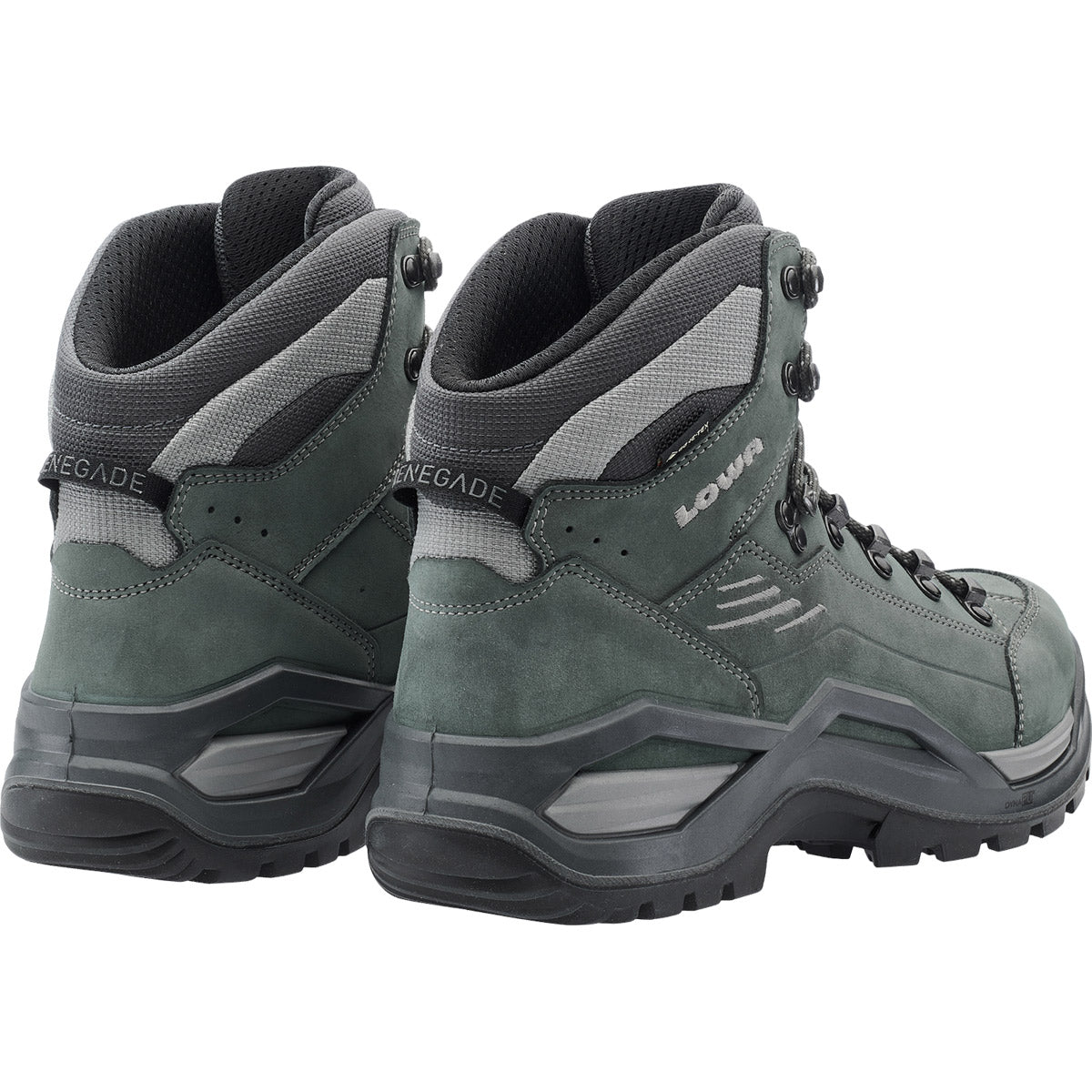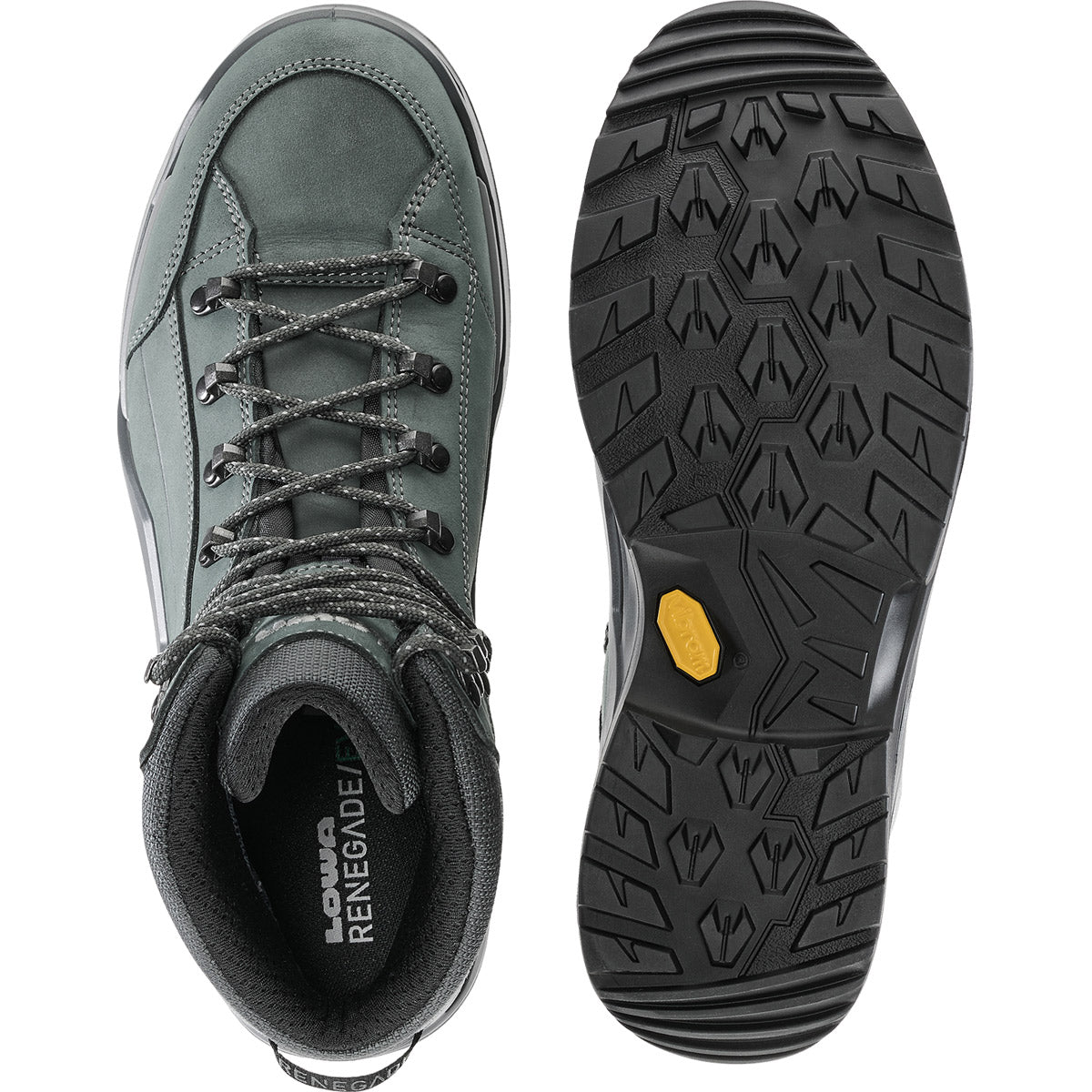 Durante décadas, la RENEGADE ha sido sinónimo de un atributo en particular: el ajuste perfecto. Para llevar esta característica al siguiente nivel, LOWA ha añadido algunos detalles especiales que hacen que la nueva RENEGADE EVO GTX MID sea aún más refinada. Se ha prestado atención, por ejemplo, a dotar a la parte superior de un confort adicional utilizando una sola pieza de material para el interior de la zona del antepié. Este refinamiento eliminó la necesidad de costuras superfluas, de modo que el cuero nobuk puede ahora ajustarse con flexibilidad a la forma individual de los huesos del pie del usuario, evitando la fricción y aliviando la presión sobre la articulación del dedo gordo. El sistema de cordones de doble zona también contribuye a este efecto facilitando aún más los ajustes a las necesidades individuales, gracias a los ganchos de cierre rediseñados. La membrana GORE-TEX impermeable y transpirable es otra garantía de mayor comodidad. Además, la nueva RENEGADE incorpora una suela de nuevo diseño: la entresuela inyectada directamente consta de dos componentes que absorben los impactos. La primera capa está hecha de LOWA® DYNAPU® y la segunda de un elemento más firme que trabaja en tándem con el CROSS OVER FRAME para proporcionar una guía óptima. La nueva suela VIBRAM-RENE-TRAC® proporciona un agarre fiable.