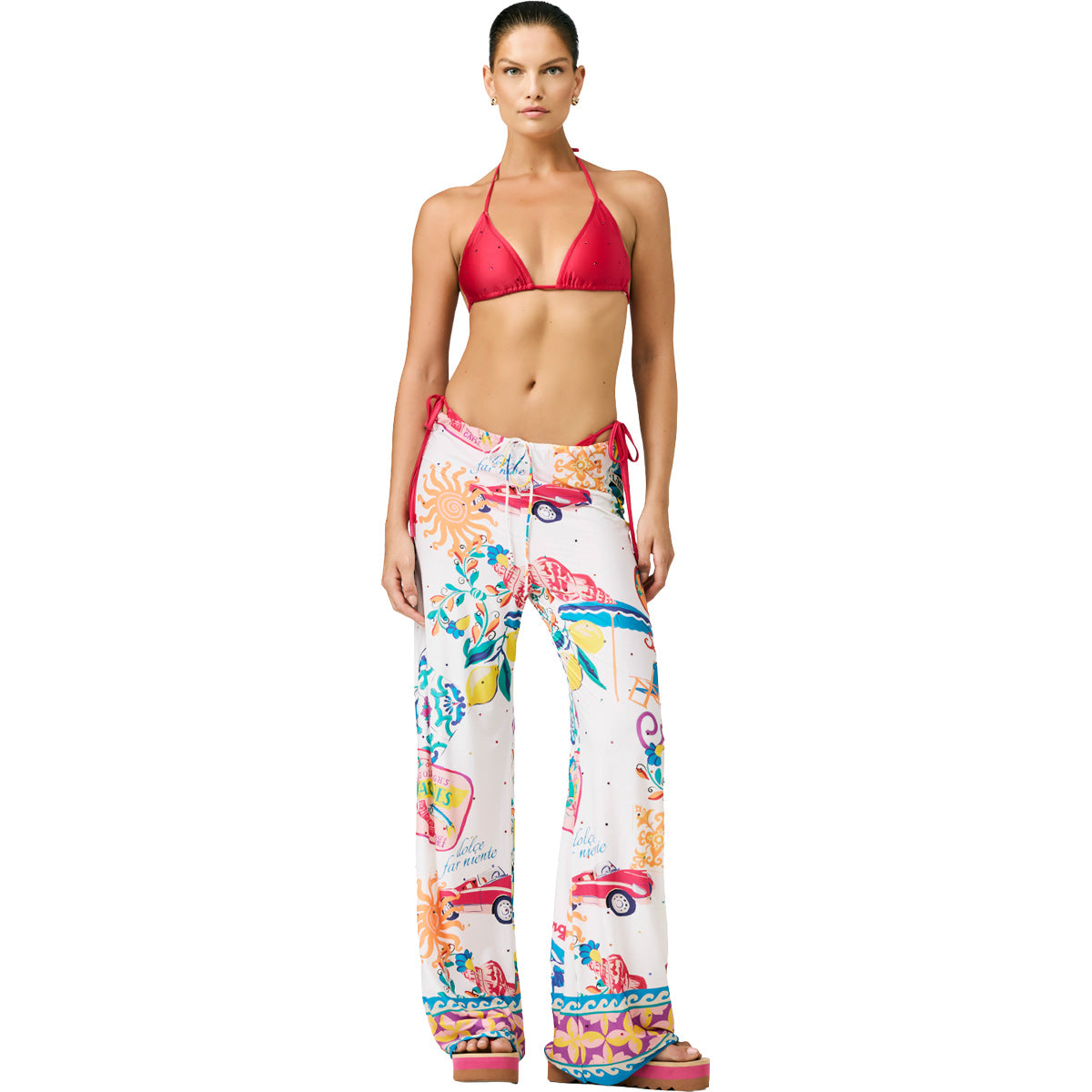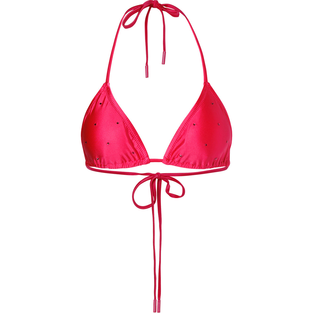 Top de bikini triángulo satinado con pedrería decorativa y copas extraíbles.