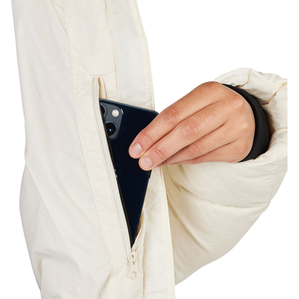 + Incluye un acabado hidrófugo duradero (DWR) que repele la nieve y la lluvia ligeras sin utilizar productos químicos tóxicos a base de fluorocarbono.