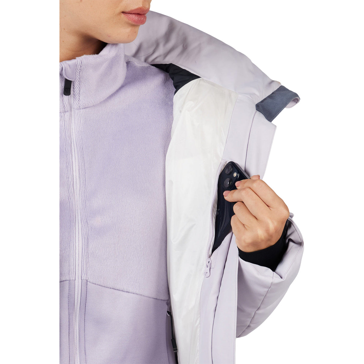 + Detalles como el faldón integrado y los puños con orificio para el pulgar anteponen la comodidad a todo lo demás.
