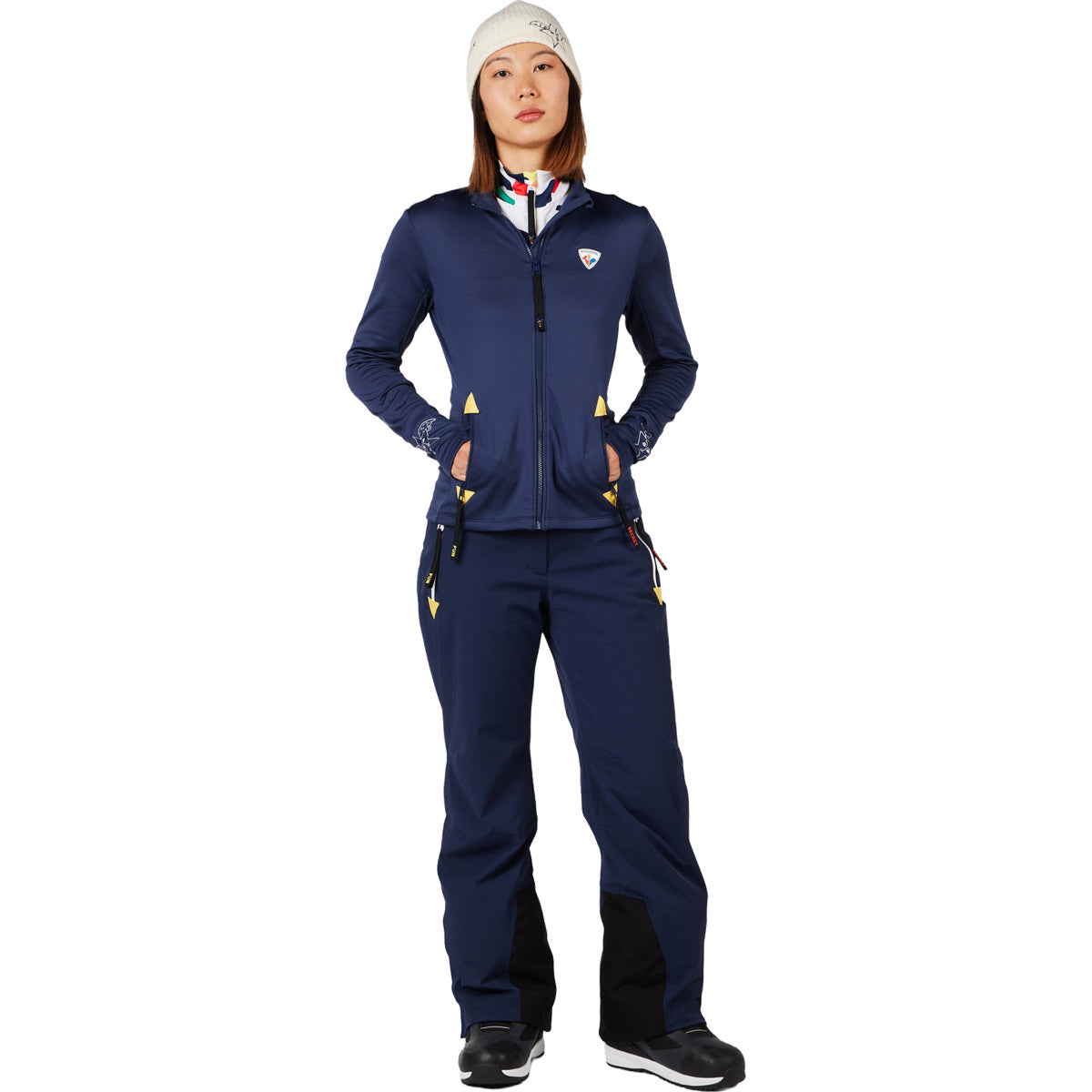 Un estampado de ángeles en la chaqueta para mujer Rossignol JCC Climi lleva a la montaña los icónicos diseños del legendario diseñador francés Jean-Charles de Castelbajac. Mientras despliegas tus alas y desciendes por las pistas, su tejido suave y elástico te permite moverte con total libertad.